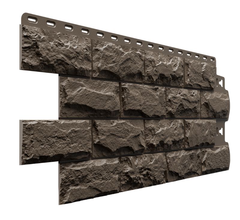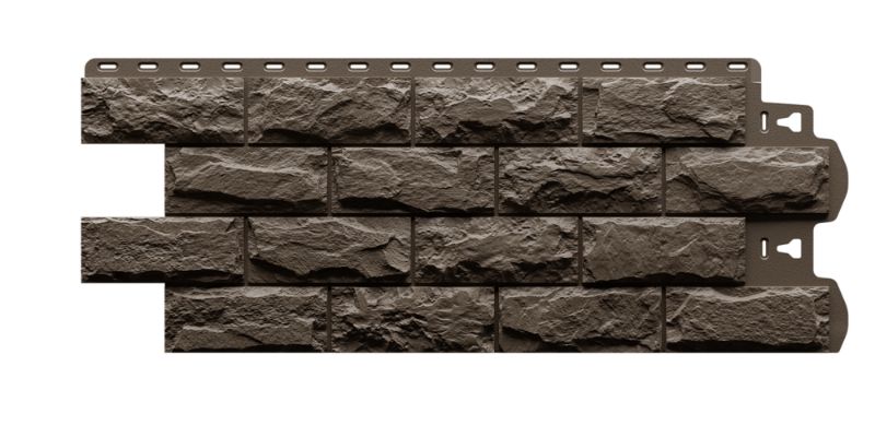 Фасадные панели оттенка «Шатель» неотличимы на вид от натуральной скальной породы. Высокотехнологичная окраска фактурного прочного материала позволяет достигнуть максимальной реалистичности.