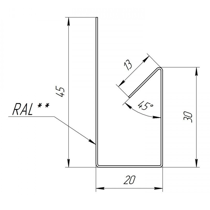 Планка J-профиль металлический Grand Line RAL 9003 Белый 3000 мм